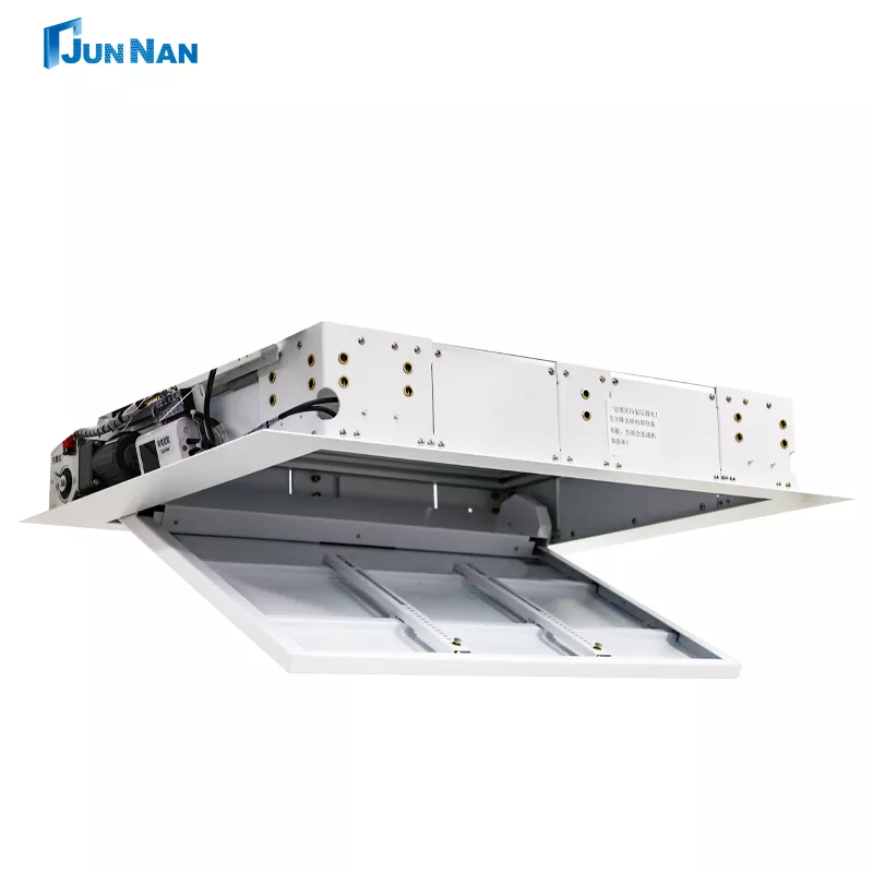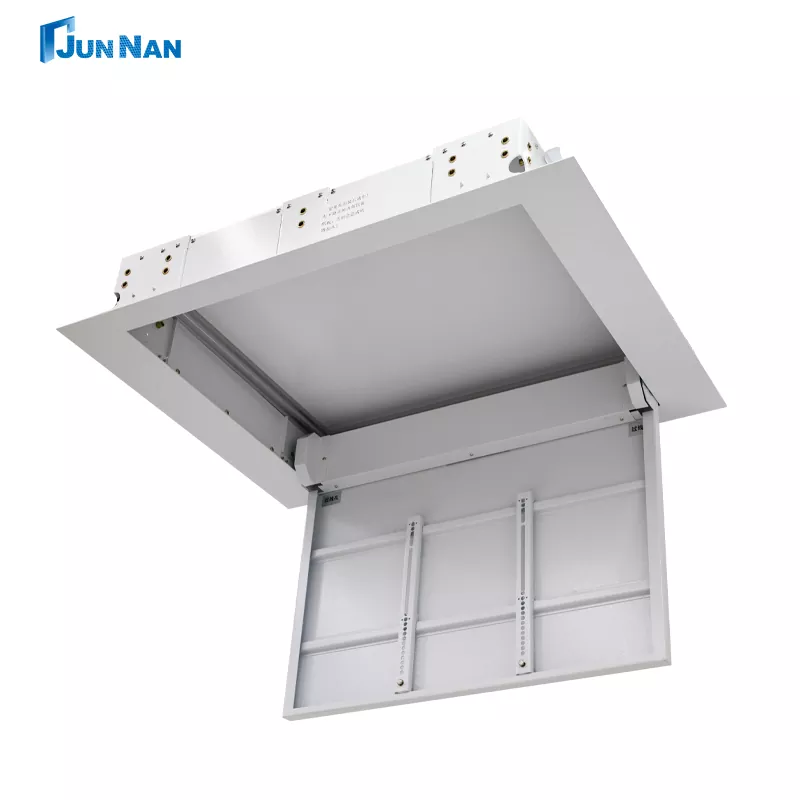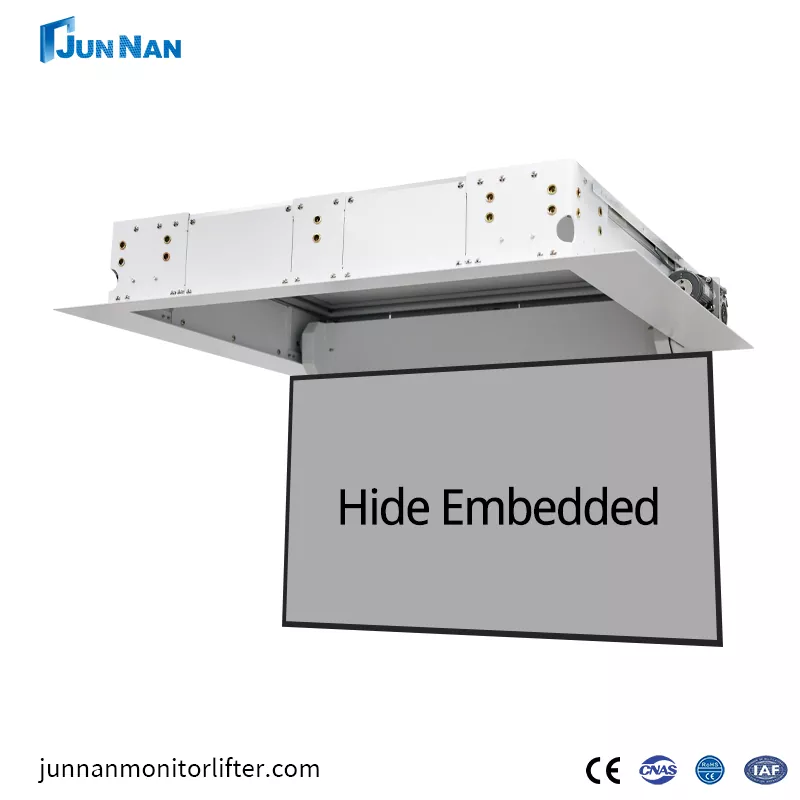 Junnan TV teto flipper posicionamento inteligente controle remoto/controle central/controle manual, fácil e conveniente de operar. levantamento e ajusteAlto grau de liberdade e controlabilidade, a distância de levantamento e abaixamento do cabide pode ser ajustada livremente. Controle de motor estável, vários controles e operação convenienteBaixo ruído integrado, operação estável e silenciosa A instalação oculta pode ser escondida na parede, elegante, bonita E economia de espaço.