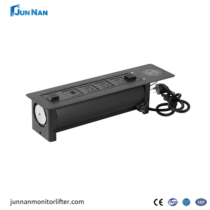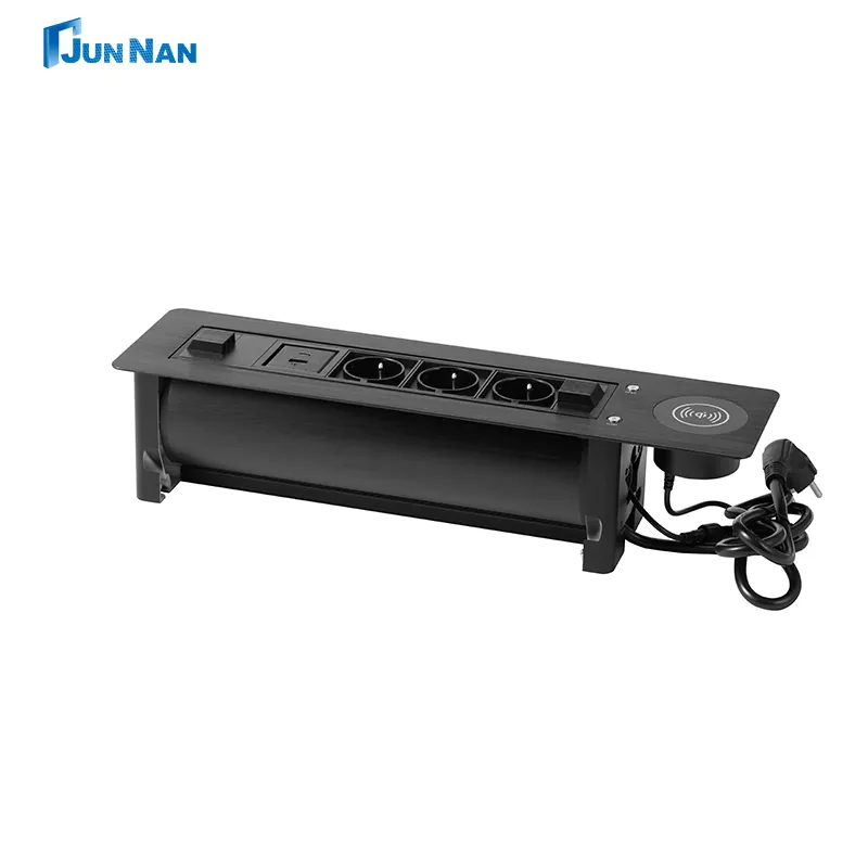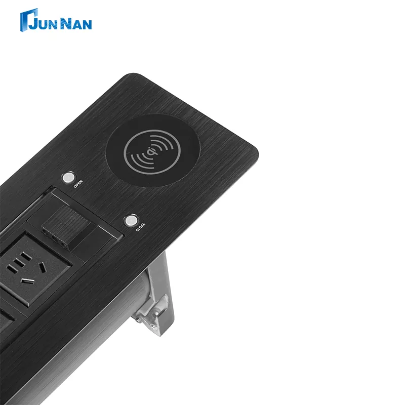Guangzhou Junan é um fabricante profissional de soquete de mesa pop-up inteligente motorizado de carregamento USB e carregamento sem fio na China. O soquete de mesa pop-up é um tipo de dispositivo de soquete instalado na área de trabalho, que pode ser aberto ou levantado de uma maneira específica para torná-lo mais conveniente de usar e, ao mesmo tempo, manter a área de trabalho organizada e fácil de usar para conferências mesa. Geralmente é levantado ou aberto ao tocar em um botão e pode ser abaixado e oculto quando não estiver em uso, nivelado com a área de trabalho, sem afetar o uso normal da área de trabalho. Equipado com tomada AC e módulo USB. O conector AC pode ser projetado com uma porta de segurança para evitar o perigo de choque elétrico causado pela inserção de um objeto estranho em um lado, e o módulo USB pode fornecer várias portas de saída, suportar saída de carregamento rápido e se adaptar a uma variedade de carregamento rápido. protocolos.